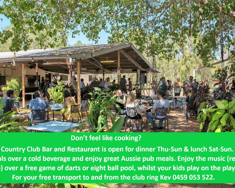 The Cox Country Club Bar and Restaurant is open for dinner Thu-Sun & lunch Sat-Sun. Meet friendly locals over a cold beverage and enjoy great Aussie pub meals. Enjoy the music (regular live bands also) over a free game of darts or eight ball pool, whilst your kids play on the playground. Free transport from Golden Sands to and from the club is available.